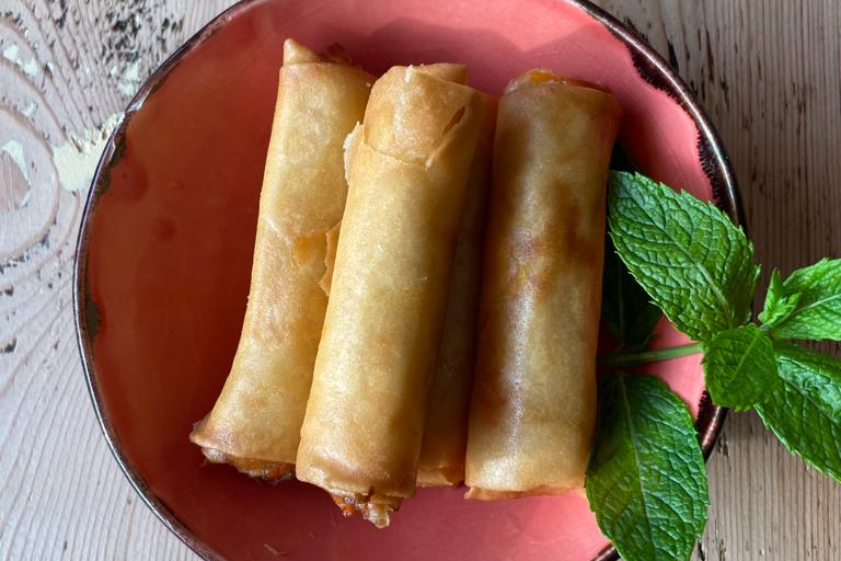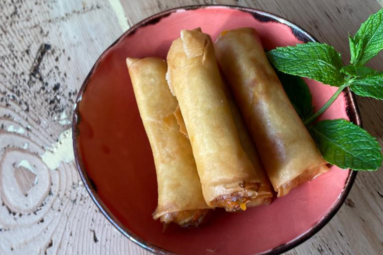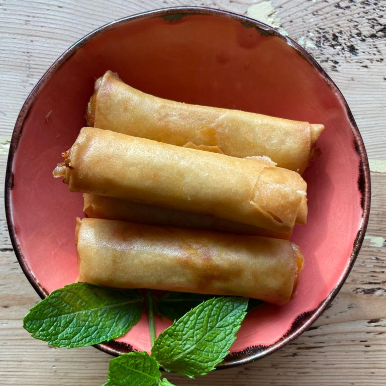 Delightful spring rolls filled with a medley of crispy vegetables, a tasty and satisfying appetizer.