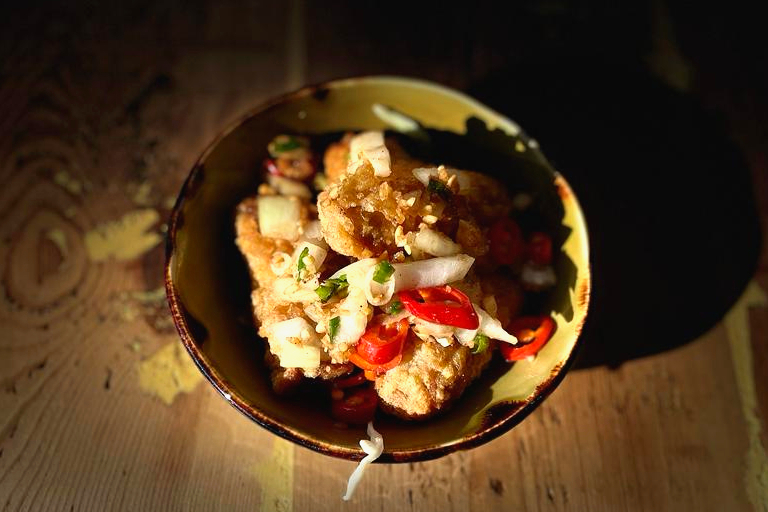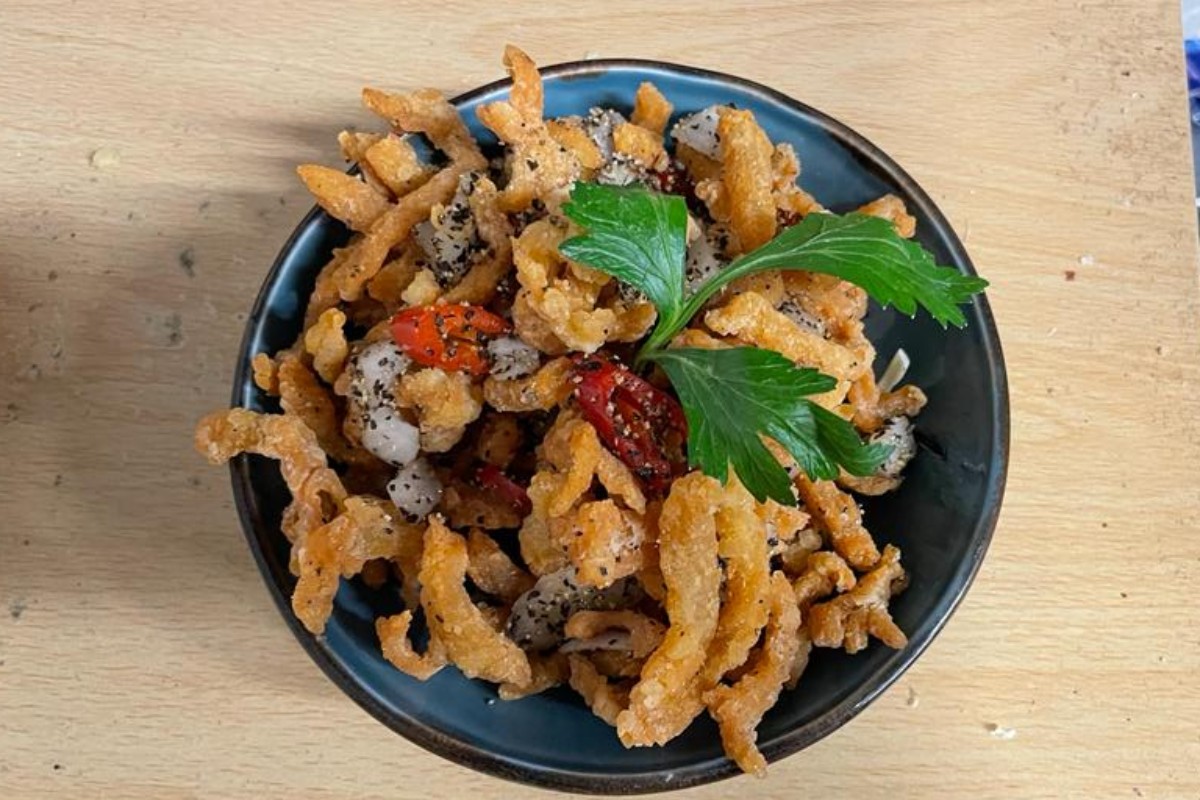 Spicy. Tender squid, lightly battered and seasoned with salt and pepper for a crispy, flavourful appetiser.